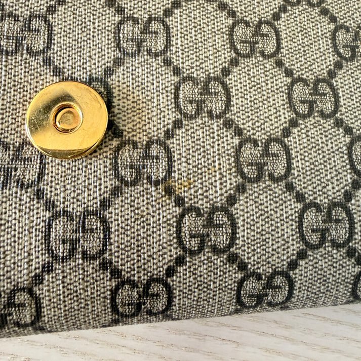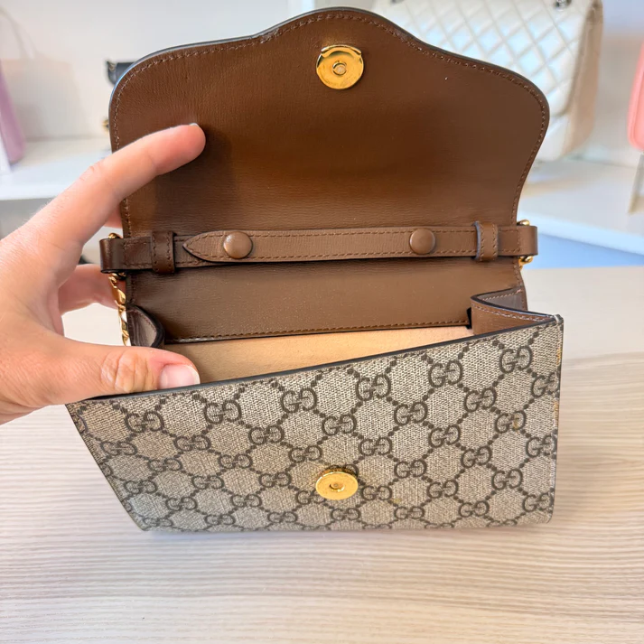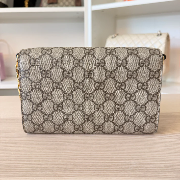 Gucci GG Supreme Monogram Azalea Calfskin Web Mini Horsebit 1955 Chain Shoulder Bag Beige